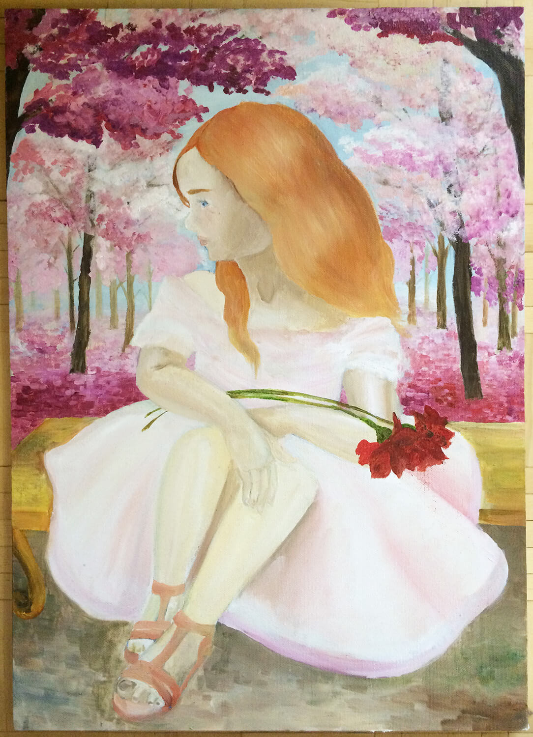 Девочка с букетом. Картина маслом 500*700 мм. 2017 год