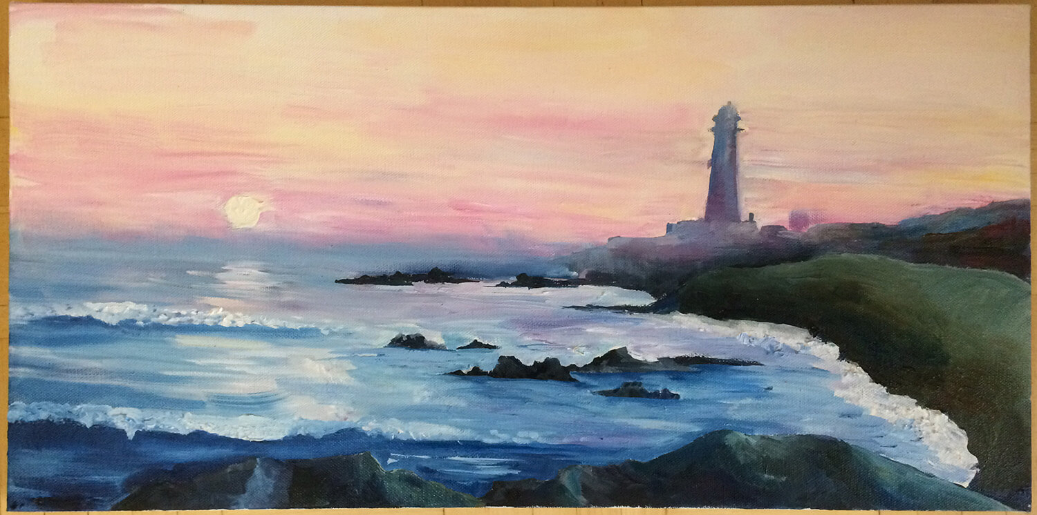 Маяк на берегу. Картина маслом 300*600 мм. 2017 год