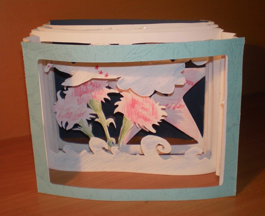На практических занятиях в художественной школе исскуств нас научили делать туннельные открытки.